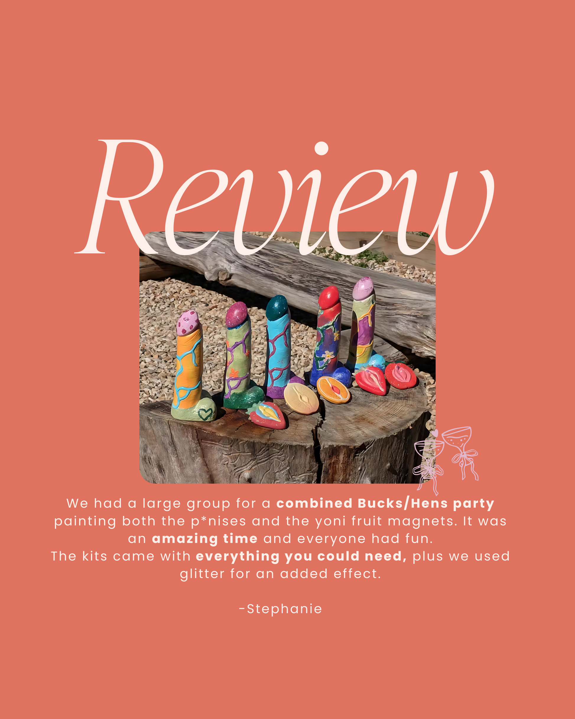 Our peachy-toned gift boxes not only protect your kits but create an element of surprise, greeting guests with a provocative pun as they expose the cheeky ceramic within.